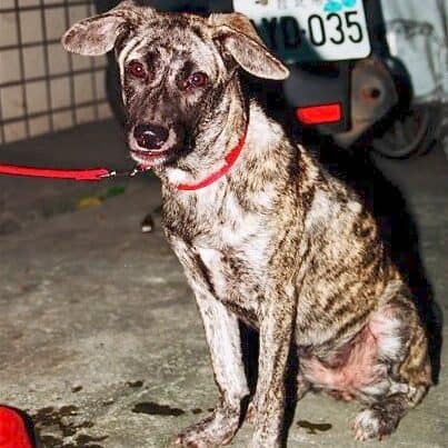 Tiger is the first dog Sean rescues in Taiwan. Just a young puppy, she is found unconscious at the side of the road, covered in mange.
